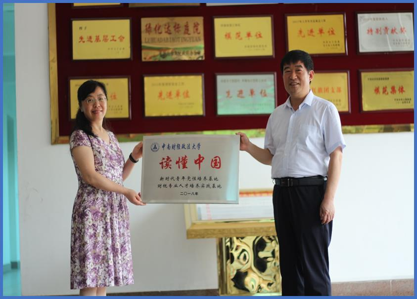 7月9日上午12点,周春英教授和宝丰县财政局局长杨国旗同志共同为“新时代青年党性培养基地”暨“财税专业人才培养实践基地”挂牌。