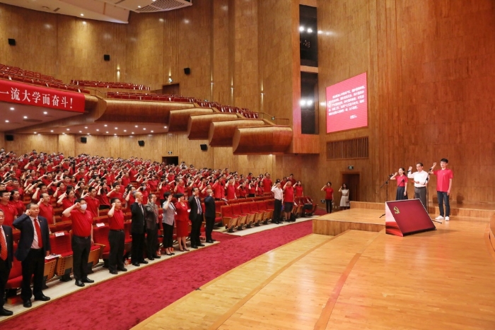 在北(bei)京大(da)学常务(wu)副校长龚旗煌的(de)带领下,新党(dang)(dang)(dang)(dang)员进行入党(dang)(dang)(dang)(dang)宣誓(shi),老(lao)党(dang)(dang)(dang)(dang)员重温入党(dang)(dang)(dang)(dang)誓(shi)词。“我(wo)志愿(yuan)加入中国(guo)共产党(dang)(dang)(dang)(dang)……为(wei)共产主义(yi)奋斗终身(shen),随(sui)时(shi)准(zhun)备为(wei)党(dang)(dang)(dang)(dang)和人(ren)民牺牲一切,永(yong)不(bu)叛党(dang)(dang)(dang)(dang)。”铿锵有力的(de)誓(shi)言(yan)久久回荡,回荡在燕(yan)园的(de)每一个院系部门(men),回荡在每一个北(bei)大(da)共产党(dang)(dang)(dang)(dang)员的(de)心(xin)中。
