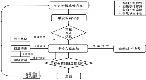 一是实施“一班一方案,一生一计划”,以班级成长激发学生的发展动力,在班级建设层面进行全过程引导。