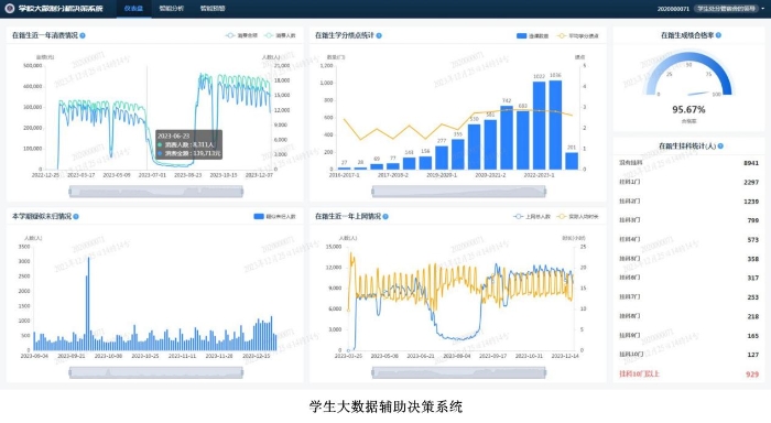 学(xue)校落实(shi)教育数字(zi)化战略行动(dong),构建学生大数据(ju)辅助决策(ce)系统,深度(du)融合、汇聚(ju)各类平(ping)台数据(ju),为(wei)每(mei)一(yi)(yi)名学(xue)生(sheng)生(sheng)成(cheng)一(yi)(yi)份(fen)核心素(su)养(yang)达(da)成(cheng)度(du)报告,实现(xian)对(dui)(dui)学(xue)生(sheng)综(zong)合素(su)质评价的全场景展示(shi)、全要素(su)覆盖、全过程监测(ce)。充分发挥(hui)大(da)数(shu)据平(ping)台对(dui)(dui)学(xue)生(sheng)科(ke)学(xue)评价、趋势预(yu)警等功能(neng),帮(bang)助职能(neng)部门、学(xue)生(sheng)社(she)区(qu)指导老师(shi)准(zhun)确研(yan)判、及时预(yu)警、科(ke)学(xue)评价,提升学(xue)生(sheng)工作效能(neng),助力平(ping)安社(she)区(qu)建(jian)设。统筹推进“一(yi)(yi)站式(shi)”学(xue)生(sheng)社(she)区(qu)网上办事大(da)厅建(jian)设、校园统一(yi)身份认(ren)证系统建设,实现学生事(shi)务一网通(tong)办(ban)、一站畅办(ban)。自主研发“房间预约”应用程(cheng)序,集成(cheng)预约使用(yong)、通(tong)知公(gong)告等(deng)功能(neng),2024年上(shang)半年预约使用1739余人次。