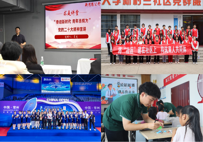 出(chu)台(tai)《关于(yu)纵(zong)深(shen)推进(jin)“一站(zhan)式(shi)”学(xue)(xue)生(sheng)社(she)(she)(she)区(qu)(qu)(qu)(qu)(qu)内涵建设的实施(shi)方(fang)案(an)》,重构社(she)(she)(she)区(qu)(qu)(qu)(qu)(qu),优(you)化学(xue)(xue)区(qu)(qu)(qu)(qu)(qu),构建党(dang)建引领、队伍(wu)入驻(zhu)、学(xue)(xue)生(sheng)参与、文化浸润、数字(zi)赋能(neng)(neng)“五(wu)位(wei)一体(ti)(ti)(ti)”社(she)(she)(she)区(qu)(qu)(qu)(qu)(qu)育人(ren)工(gong)(gong)作(zuo)(zuo)体(ti)(ti)(ti)系(xi),共(gong)(gong)(gong)筑“双区(qu)(qu)(qu)(qu)(qu)”协同(tong)育人(ren)共(gong)(gong)(gong)同(tong)体(ti)(ti)(ti)。成立辅导(dao)员(yuan)(yuan)工(gong)(gong)作(zuo)(zuo)室(shi)8个,名班(ban)主任工(gong)(gong)作(zuo)(zuo)室(shi)1个,心(xin)理(li)(li)(li)名师工(gong)(gong)作(zuo)(zuo)室(shi)1个,培育特色育人(ren)项目(mu)7个、工(gong)(gong)作(zuo)(zuo)精(jing)品(pin)(pin)项目(mu)10个。健全“学(xue)(xue)院—班(ban)级(ji)—学(xue)(xue)生(sheng)”纵(zong)向管理(li)(li)(li)体(ti)(ti)(ti)系(xi)与“公寓—楼(lou)层—学(xue)(xue)生(sheng)”横(heng)向服务(wu)体(ti)(ti)(ti)系(xi),建好校长(zhang)助理(li)(li)(li)团、自律委员(yuan)(yuan)会(hui),提升退役(yi)学(xue)(xue)生(sheng)发(fa)(fa)展服务(wu)联合会(hui)品(pin)(pin)质(zhi),设立社(she)(she)(she)区(qu)(qu)(qu)(qu)(qu)警(jing)务(wu)室(shi),助力打造“活力社(she)(she)(she)区(qu)(qu)(qu)(qu)(qu)、自治社(she)(she)(she)区(qu)(qu)(qu)(qu)(qu)、书香社(she)(she)(she)区(qu)(qu)(qu)(qu)(qu)、平(ping)安社(she)(she)(she)区(qu)(qu)(qu)(qu)(qu)、美丽(li)社(she)(she)(she)区(qu)(qu)(qu)(qu)(qu)”。发(fa)(fa)挥“新能(neng)(neng)红盟(meng)”党(dang)建品(pin)(pin)牌示范引领作(zuo)(zuo)用,与常州第二人(ren)民医(yi)院等(deng)21个医(yi)、警(jing)、校、村(cun)、社(she)(she)(she)、企基层党(dang)组(zu)织开展结对,共(gong)(gong)(gong)建“金(jin)盾(dun)护航工(gong)(gong)作(zuo)(zuo)室(shi)”“普法天平(ping)工(gong)(gong)作(zuo)(zuo)室(shi)”“救在身边工(gong)(gong)作(zuo)(zuo)室(shi)”,组(zu)织“防诈同(tong)心(xin),反诈同(tong)行”“网络安全进(jin)社(she)(she)(she)区(qu)(qu)(qu)(qu)(qu)”“急救技能(neng)(neng)进(jin)社(she)(she)(she)区(qu)(qu)(qu)(qu)(qu)”等(deng)教育活动。