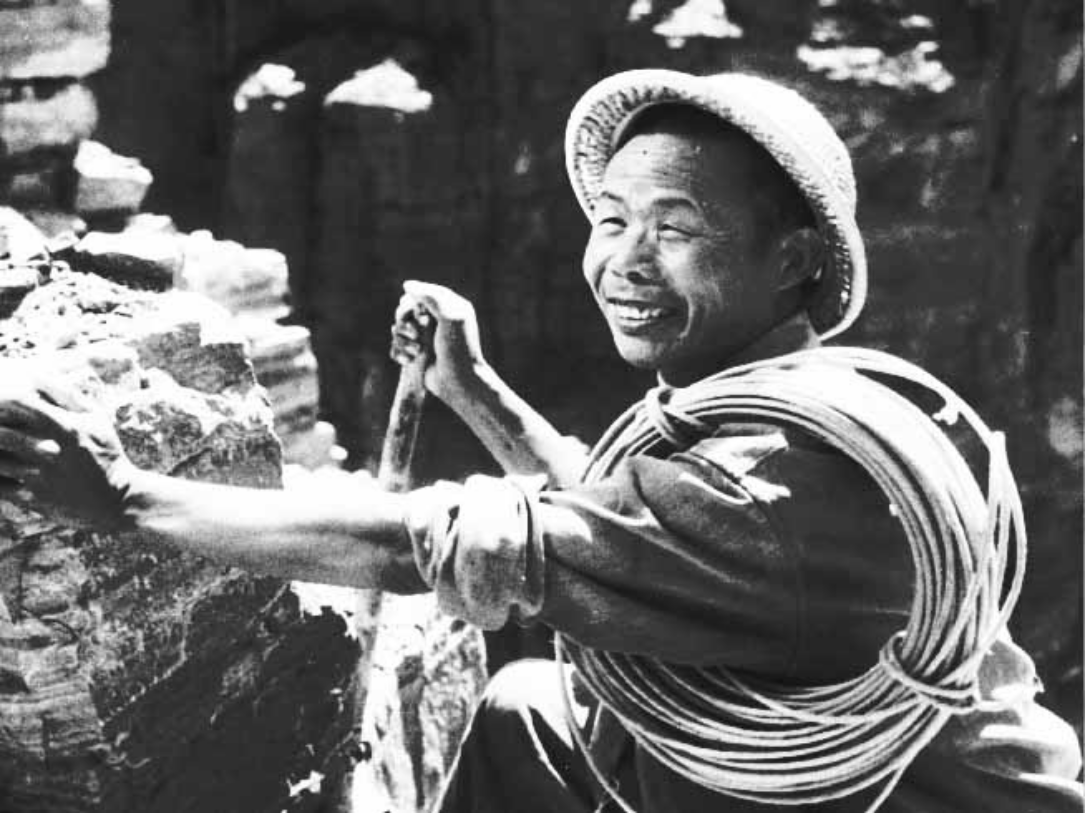 红旗渠动工后,李改云带领本村群众来到工地,井湾大队...